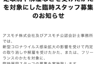 新型コロナウイルスの影響で内定取消や解雇などを受けたかたを対象にした臨時スタッフ募集のお知らせ