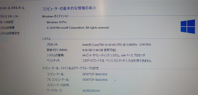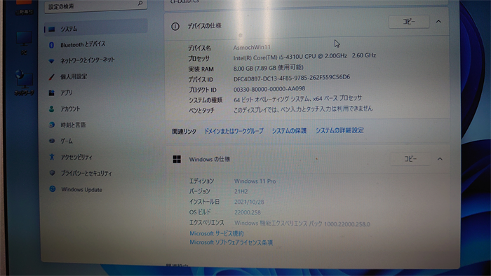 CPUはCore i5 4310UでもちろんWindows11には対応していません。