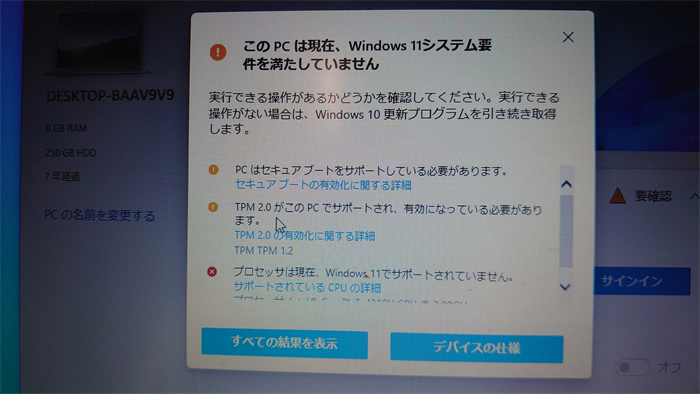 少し古いパソコンではWindows11にアップデートができないものが多々あります。