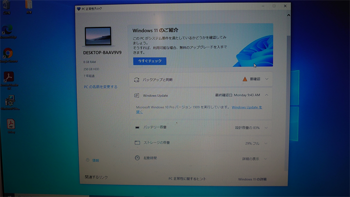 今回はWindows11アップグレードの実験台として頑張っていただきます。