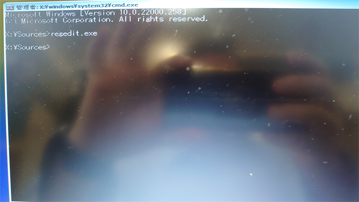 コマンドプロンプトに「regedit.exe」とコマンドを打ってエンターキーをクリックします。