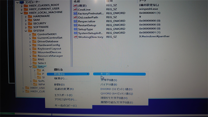「HKEY_LOCAL_MACHINE\SYSTEM\Setup」の所に「LabConfig」というキーを作ります。