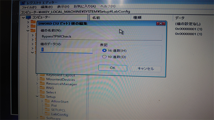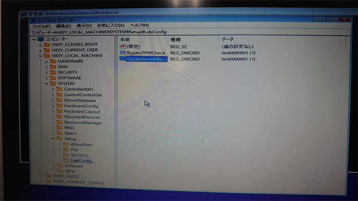 平たく言うとレジストリに情報を追加してWindows11をインストールする際の要件チェックを回避して無理やりインストールする方法です。