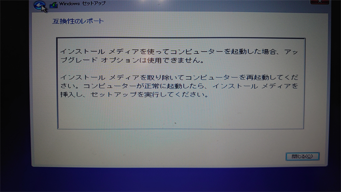 ここで一旦、前回と同様インストールできない旨の表示が出て止まります。